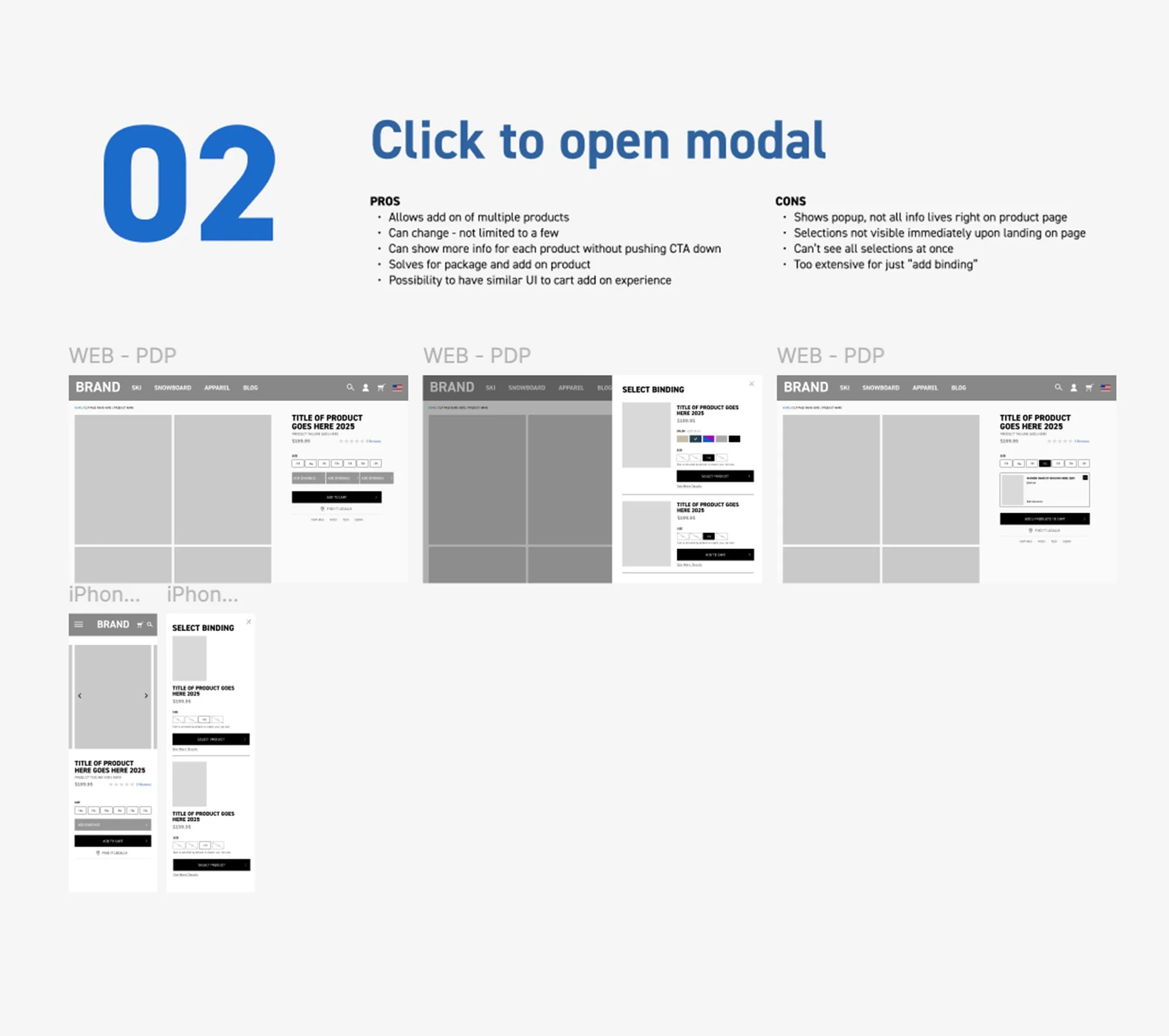 We began by mapping different conceptual models for how add-ons could appear within the shopping experience: