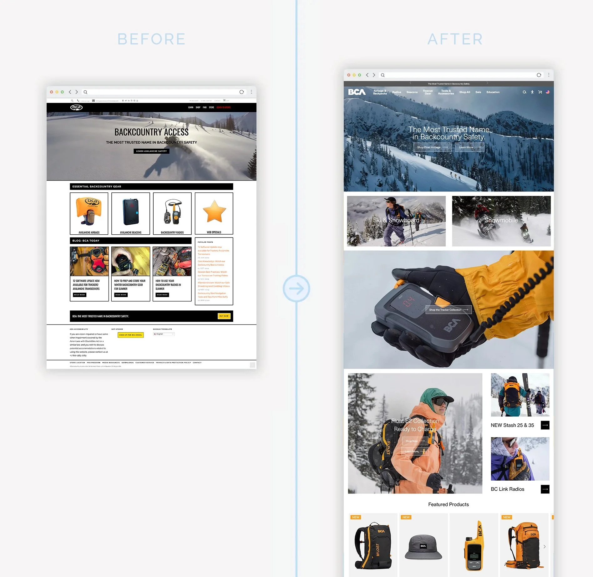 Simplified navigation to work across both ski, snowboard, and outdoor brands