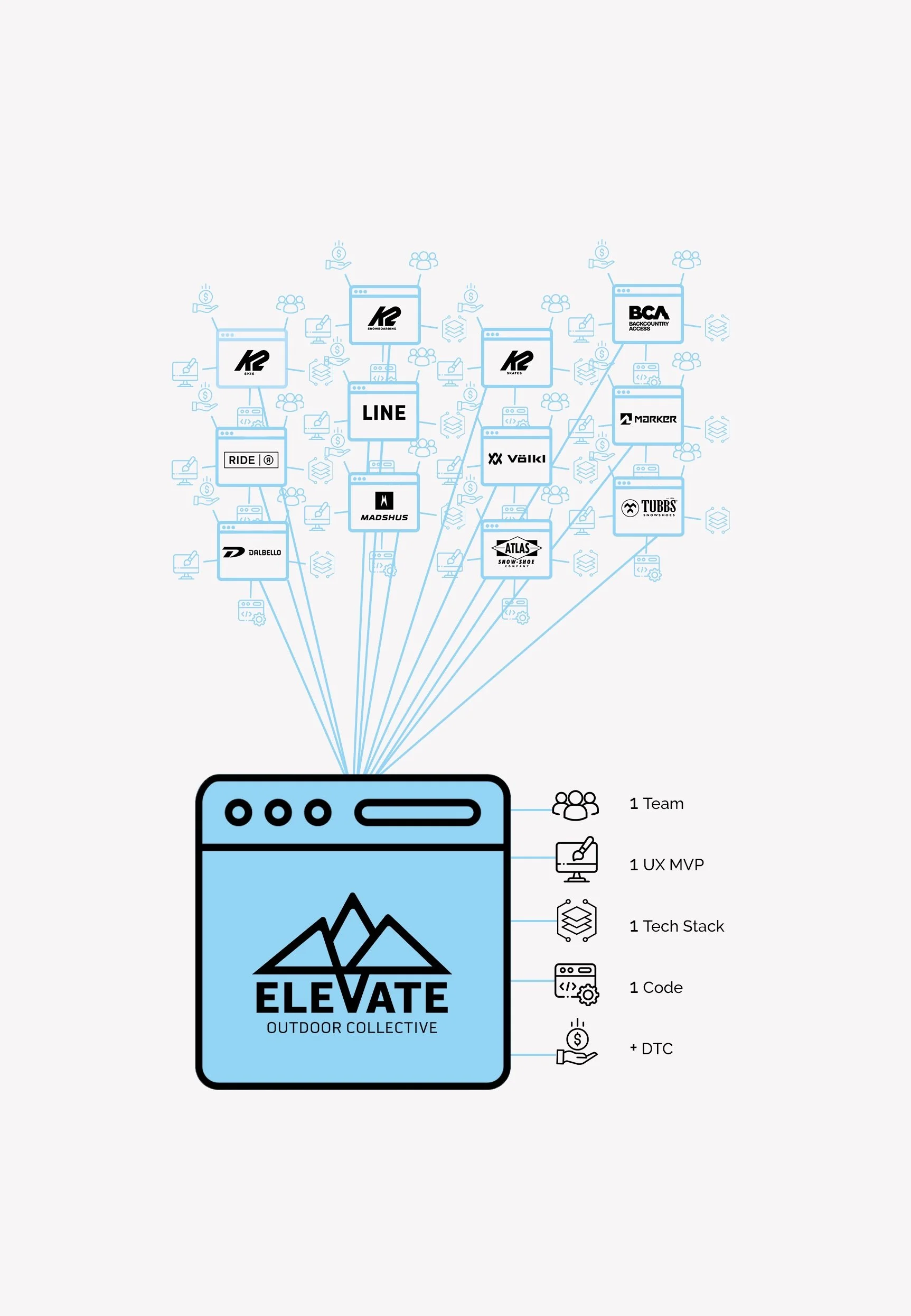 I led the UX transformation of an e-commerce ecosystem for 13 outdoor brands under the Elevate Outdoor Collective umbrella, bringing their digital experiences together under one cohesive vision. My goal was to make every interaction feel effortless. Improving usability, boosting conversions, and reflecting the spirit of each brand through thoughtful, data-informed design.
